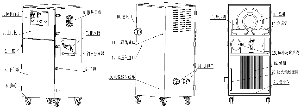 機(jī)器名稱:防爆脈沖反吹清灰凈化機(jī)
