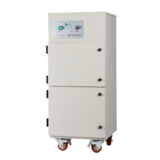 切割工作中在被割板材受熱汽態蒸發后被切割頭的氣流從割縫吹到被割板材下方迅速冷凝形成煙塵。所以絕大部分煙塵在被割板材的下面。常用的煙塵吸收方法是采用特殊結構的除塵式切割,對被切割板材下面的粉塵,通過與激光切割煙霧凈化器系統用吸氣管道相連接的吸風口,在切割煙塵散發之前進行吸收,吸收的煙塵通過管道直接進入中央凈化系統凈化。 進入凈化系統后的粉塵,首先通過凈化系統內置的阻火網裝置,分離大顆粒粉塵到粉塵收集筒。小顆粒粉塵隨氣流進入過濾筒區域進行再次分離凈化,最終氣體達到環保要求之后排出。 |