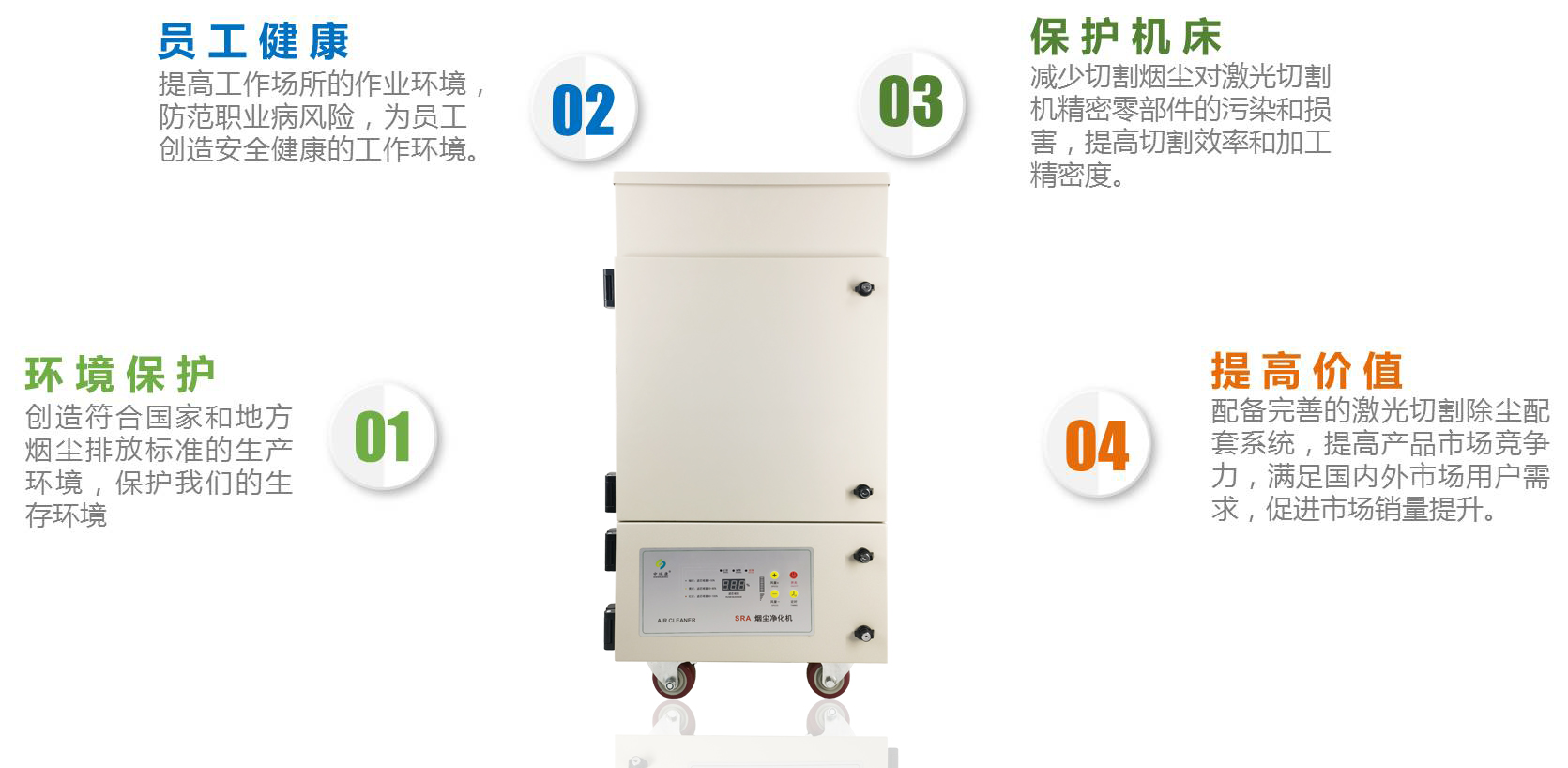 近年來(lái),激光技術(shù)在金屬板材切割領(lǐng)域得到廣泛應(yīng)用,國(guó)產(chǎn)數(shù)控激光切割機(jī)產(chǎn)業(yè)發(fā)展迅速 。激光切割是利用高密度能量的激光照射使材料受熱熔化(蒸發(fā))而切割的方法。激光切割機(jī)在切割工件時(shí),輔助氣體與激光束同軸噴射,切割過(guò)程產(chǎn)生大量煙塵。 金屬材料激光切割時(shí),釋放出煙塵顆粒大小可分為塵埃(顆粒大小超過(guò)1μm)、氣溶膠(顆粒小于1μm,氣溶膠是一種含有細(xì)微分布的固體或液體氣體)及氣體,其中97%的顆粒直徑小于5.7μm。這些煙塵是顆粒極細(xì)小的混合物塵埃或氣溶膠,一般只有幾微米,會(huì)刺激人的眼睛及呼吸系統(tǒng),引發(fā)咳嗽、眼睛刺激等生理性的刺激反應(yīng)。通常認(rèn)為空氣動(dòng)力學(xué)粒徑小于7μm的顆粒物是可以進(jìn)入肺部深層并永久住留肺部,從而可能引發(fā)塵肺等慢性肺部疾病。 如果激光切割設(shè)備沒(méi)有除塵裝置或除塵效果不好,切割煙塵不僅污染精密部件切割頭,影響其壽命和穩(wěn)定性,而且嚴(yán)重污染工作環(huán)境,危害工作人員的身體健康。因此激光切割除塵治理顯得尤為重要,那么激光切割除塵治理的意義有哪些呢? 1、環(huán)境保護(hù) 創(chuàng)造符合國(guó)家和地方煙塵排放標(biāo)準(zhǔn)的生產(chǎn)環(huán)境,保護(hù)我們的生存環(huán)境 2、員工健康 提高工作場(chǎng)所的作業(yè)環(huán)境,防范職業(yè)病風(fēng)險(xiǎn),為員工創(chuàng)造安全健康的工作環(huán)境。 3、保護(hù)機(jī)床 減少切割煙塵對(duì)激光切割機(jī)精密零部件的污染和損害,提高切割效率和加工精密度。 4、提升價(jià)值 配備完善的激光切割除塵配套系統(tǒng),提高產(chǎn)品市場(chǎng)競(jìng)爭(zhēng)力,滿足國(guó)內(nèi)外市場(chǎng)用戶需求,促進(jìn)市場(chǎng)銷量提升。