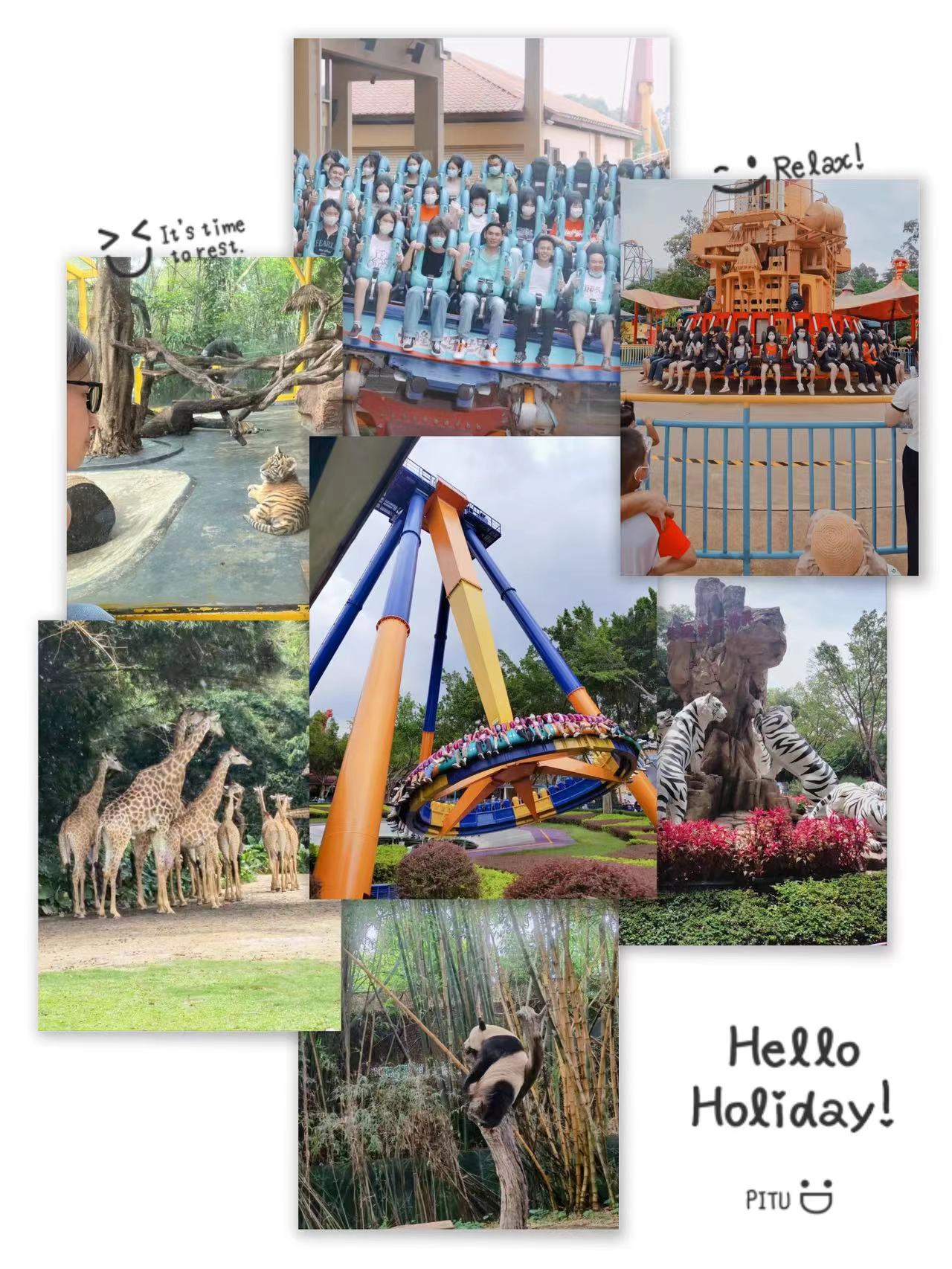 雖然天氣炎熱,但是絲毫擋不住人的熱情。在長隆歡樂世界六大主題區(qū):叢林探險(xiǎn)、律動天地、歡樂嘉年華、星夢奇園、感動空間、尖叫地帶、兩大演藝廣場+劇場表演區(qū)域,隨處可見人盡情體驗(yàn)項(xiàng)目的身影,下午出發(fā)長隆野生動物園,和動物近距離接觸,感受大自然的無限奧妙及魅力,大家三五成群地結(jié)伴而行,激情洋溢,喜出望外,體驗(yàn)過程中不忘留影打卡,記錄旅行中的點(diǎn)點(diǎn)滴滴。