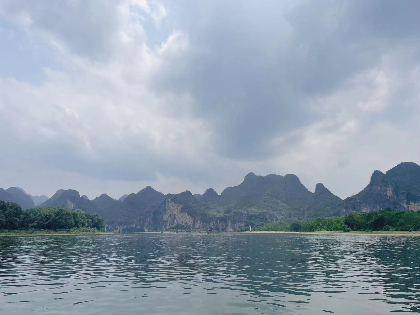 下午我們乘坐小竹筏,游覽漓江。兩岸山峰清秀迤邐,連綿起伏,形態萬千,江岸綠草如茵,翠竹蔥郁,樹木繁蔭。讓人仿佛進入了天人合一的詩意境界,返璞歸真的自由天地。