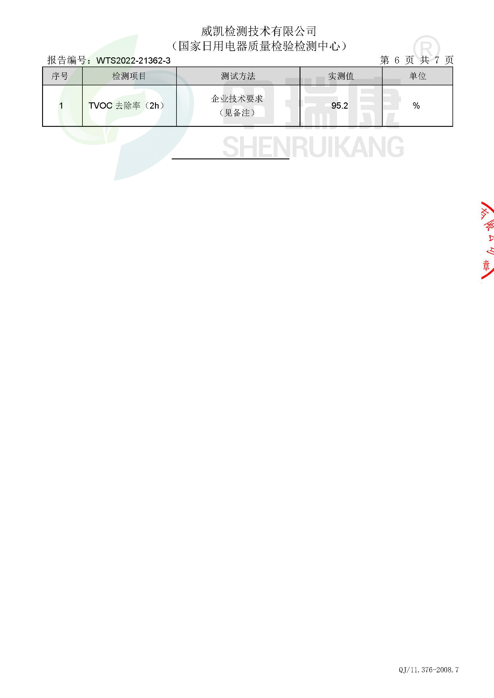 這一出色表現,得益于產品搭載的不銹鋼預過濾網+雙驅高壓靜電場協同作用,能高效攔截、吸附煙霧中的細顆粒物,從源頭鎖住污染,遠離香煙中的“隱形殺手”,也讓室內空間告別“二手煙味殘留、墻面發黃”的困擾。 亮點三:TVOC去除率95.2%,除煙除味“一步到位” 煙霧中不僅有PM2.5,更含有TVOC(總揮發性有機化合物)等有害氣體,這類物質具有刺激性氣味,長期接觸會影響人體免疫力,也是傳統凈煙產品“除煙不除味”的核心痛點。此次檢測顯示,申瑞凈煙柜TVOC去除率實測達95.8%,高于90%的參考標準,徹底破解這一行業難題。